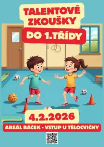 Řádný termín talentové zkoušky do 1. třídy: 4.2 2026 od 8:00 do 10:00 hod.