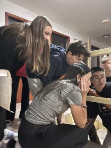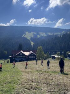 Dneska jsme si sáhli na dno… ale ne kvůli túře, ale protože jsme měli úplně novou roli, stali jsme se organizátory her.. A upřímně? Učit ostatní a ještě je zabavit není žádná sranda. Připravit hru, vysvětlit pravidla a vysvětlit je tak, aby to pochopili fakt všichni, uhlídat férovost a ještě zvládnout reflexi? Klobouček, paní učitelky, chápeme vás teď o dost víc. 😄Ale počasí nám přálo (konečně žádná mlha), a tak jsme za slunečného dne odehráli celkem 5 skvělých her, sportovních, vtipných i strategických. V pozdní odpoledne jsme dostali volno a každý si ho užil po svém. Někdo šel do sauny, jiný rozjel pingpongový turnaj století, další jen tak chilloval na pokoji. Zkrátka zasloužený relax po náročném dnu. A večer? No… nebyl by to opravdový sportovní kurz bez pořádné diskotéky! Hudba, světla, taneční kreace a smích v uších ještě dlouho po večerce. Při závěrečném hodnocení jsme si uvědomili, jak moc jsme si to užili a jak rychle to uteklo. Zítra už je totiž poslední den…Čeká nás ještě poslední herní výzva od finální party, pak balení, loučení a návrat do reality tedy do Prahy.